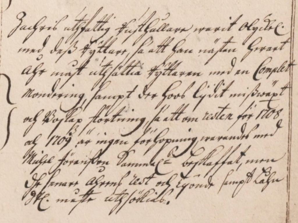 Rusthollari Zachris (Bucht) on rutiköyhä ja ollut epäonninen ratsumiehensä kanssa niin, että hän on melkein joka vuosi joutunut varustamaan ratsumiehen täysine varusteineen. Lisäksi on kärsitty katoja ja karjan tuhoja, joten vuosien 1708 ja 1709 rästien osalta ei ole mitään toivoa, samoin kuin Michel Jöranssonin (Mikkola) kohdalla.