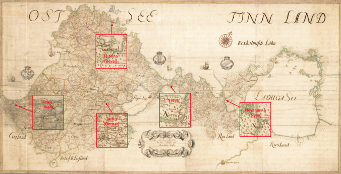 Karttakuvassa näkyy Ruotsin ns. voittomaat, eli Inkerinmaa, Viro ja Liivinmaa vuodelta 1682, eli ajalta ennen suuren Pohjan sodan alkua. Näillä tantereilla Kallionkin sotamiehet osallistuivat taisteluihin ja kaikki nämä alueet Kaarle XII hävisi. Kuvaan on erikseen merkitty merkittävimmät paikkakunnat. Pietarin kaupunkia alettiin 1703 rakentaa lähelle paikkaa, jossa Ruotsilla oli Nevanlinnan eli Nyenin linnoitus. Ruotsin valtionarkiston (Riksarkivet) digitoitu kartta on harvinaisen tarkka ja sen resoluutio kestää hyvin suurentamista: